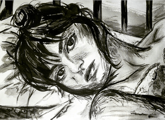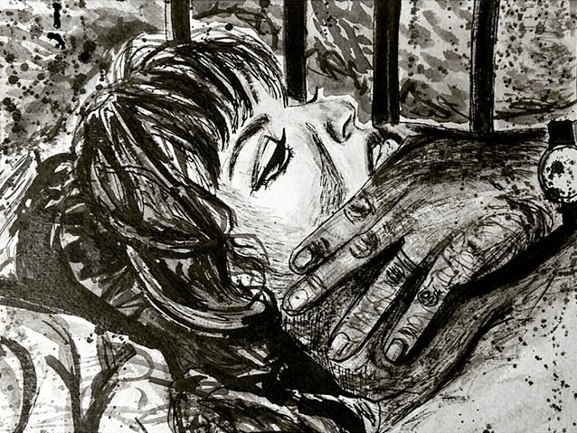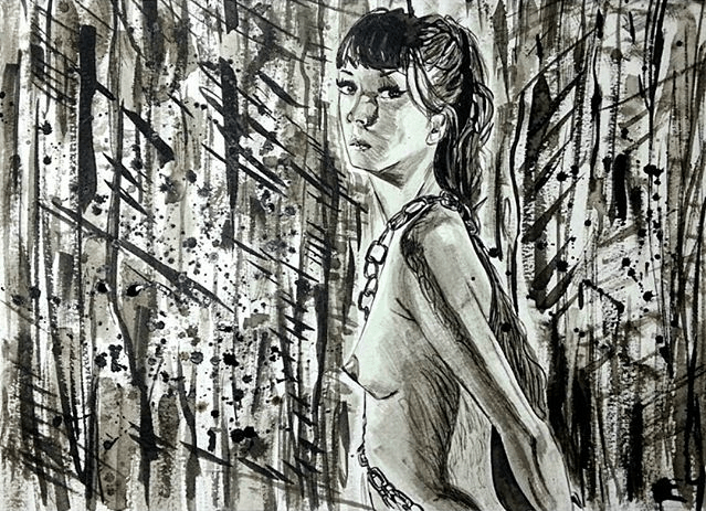 A series of acrylic and India/Sumi ink paintings inspired by the films of French writer and filmmaker Alain Robbe-Grillet. All 10 inches x 14 inches and made in spring/summer 2015. Paintings for the following films done: