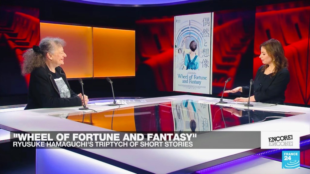 The WHEEL OF FORTUNE AND FANTASYposter I illustrated was featured on French TV. Watch as critic Lisa Nesselson praises Ryūsuke Hamaguchi’s film to Olivia Salazar-Winspear on the France24 show Encore!